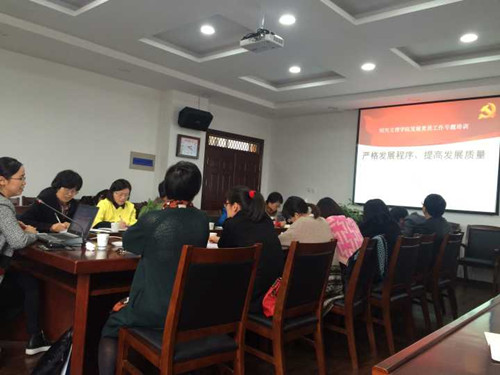 11月4日下午,公司在学院行政楼二楼会议室召开发展党员工作专题培训会,邀请校组织部钟央文老师为学院全体党务干部培训,球盟会党委副书记袁油迪出席会议并讲话。