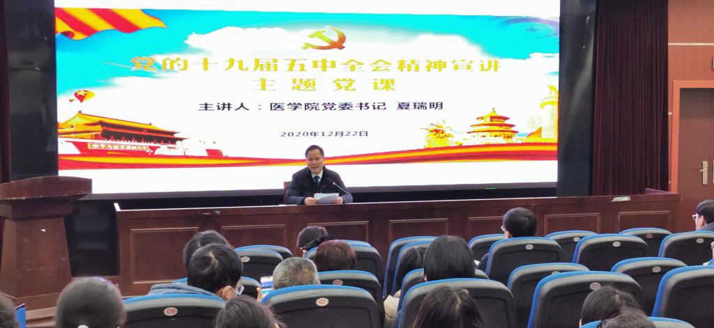 会议以主题党课的形式宣讲了中央及省委相关会议精神,明确了深刻理解“新发展成就”、“新发展阶段”、“新发展目标”、“新发展任务”、“新发展格局”、“新发展保证”等六个方面的重要意义。党的十九届五中全会对未来五年乃至2035年教育工作作出了重大部署,提出了建设高质量教育体系的明确要求。夏书记结合学院“十四五”规划初步设想,对师生党员和领导干部提出了加深对“新形势”、“新阶段”、“新理念”、“新格局”高等医学教育的认识、理解、把握和领悟。