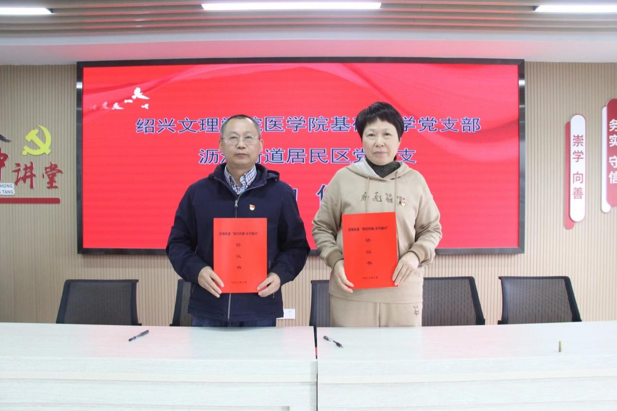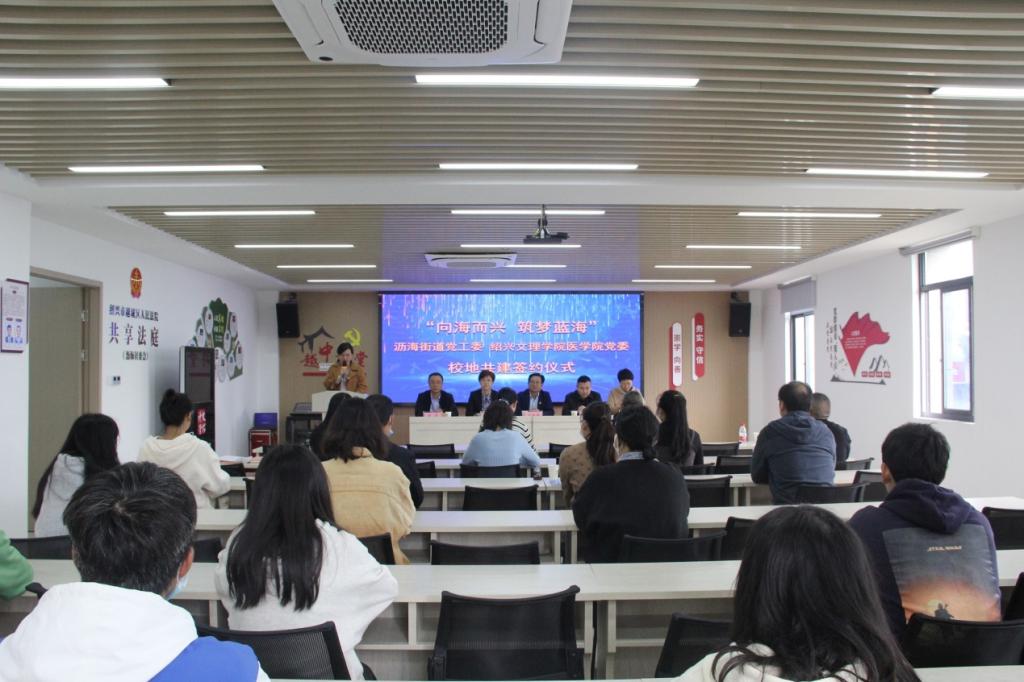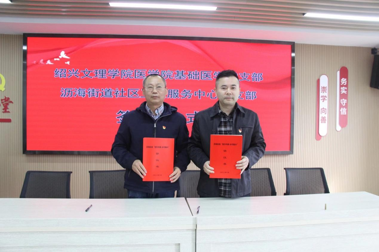 球盟会党委副书记金坚强与沥海街道党工委委员赵飞斐签订校地共建协议。球盟会基础医学党支部书记刘学红分别与浙江医药股份有限球盟会党办主任章吕、沥海社区卫生服务中心党支部书记田建良、沥海居民区党总支书记顾莉萍等签订共建协议。