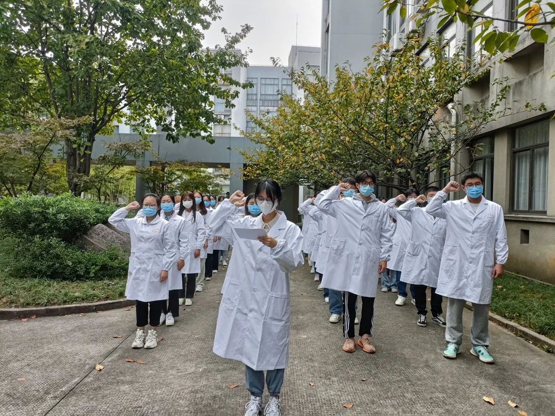 参加活动的医员工同学们身着白大褂,排成整齐的队列方阵,朝气蓬勃,心怀赤诚之心,向着国旗,高举右拳,庄严宣誓:我志愿献身医学,热爱祖国,忠于人民。通过宣誓活动表达了医员工以实际行动捍卫祖国人民健康的意愿。医为仁人之术,必具仁人之心,宣誓仪式使同学们的爱国之心更加浓烈,更加坚定了医为人民、绝不松懈的决心。通过活动,同学们更加深刻地感悟到救死扶伤的含义与仁心仁术的内涵,为今后成为更好的医护工作者投身于国家大健康事业打下基础。
