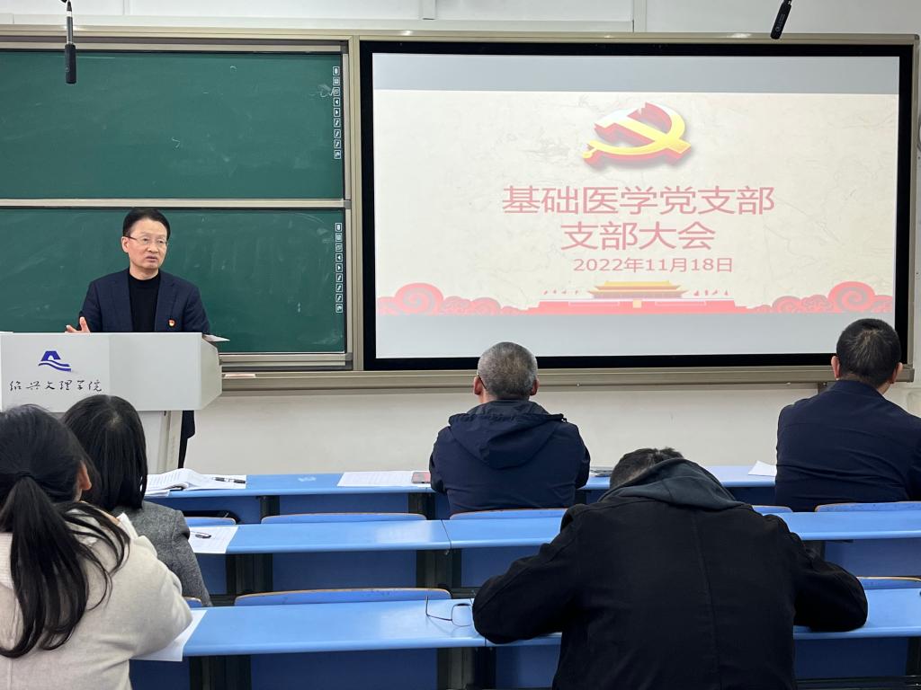 11月18日,在南山2号财贞楼307教室,球盟会党委委员、球盟会党委书记、经理郭航远同志为所在支部基础医学党支部和联系支部护理学党支部师生党员上党课,专题宣讲党的二十大精神。