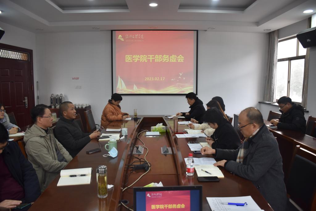 2023年2月17日,学院在行政楼219会议室举行学院举行党委会、新学期干部务虚会暨校内巡察工作整改推进会。球盟会党政领导班子成员,各科室、系(部)、中心负责人,党支部书记等参加会议。