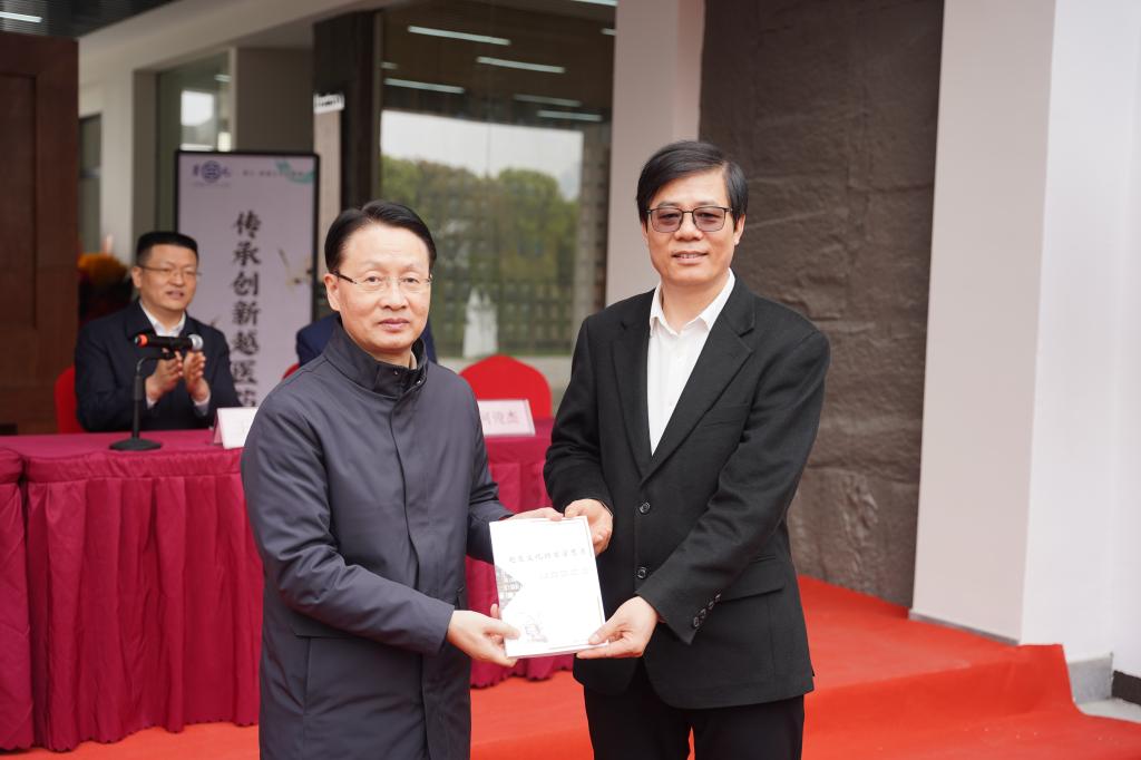 浙江震元股份有限球盟会党委委员、副总经理魏民、何溢强,球盟会官网球盟会党委委员、教研科科长、越医文化研究中心办公室主任马国庆等参加仪式。