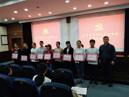 方志红老师宣读《关于公布员工党员“迎接十九大 做合格党员”征文获奖名单的通知》,何吉丽等10位同学分别获一、二、三等奖和优秀奖。