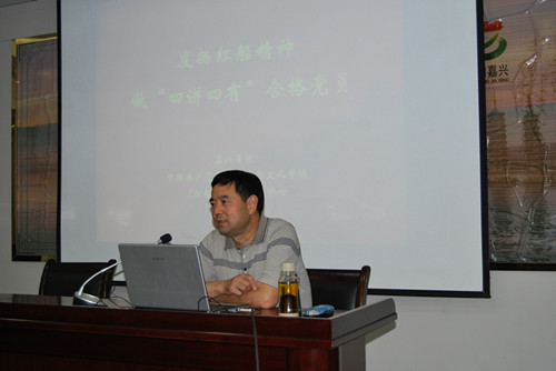 下午,嘉兴学院中国共产党革命精神与文化资源研究中心执行主任陈水林教授在嘉兴南湖纪念馆报告厅,为公司教职工党员作题为《发扬红船精神,做“四讲四有”合格党员》的专题报告。学院39名教职工党员和民主党派负责人听取了报告。报告会由球盟会党委委员、副书记袁油迪主持。