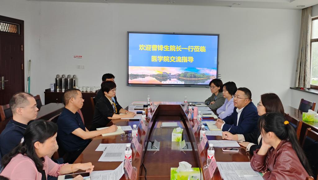 10月15日,湖北文理学院医学部临床球盟会常务副经理、附属襄阳市中心医球盟会党委委员、副经理曹锋生一行5人赴公司考察交流。球盟会党委书记吴剑平、副经理邢海燕等接待来访。