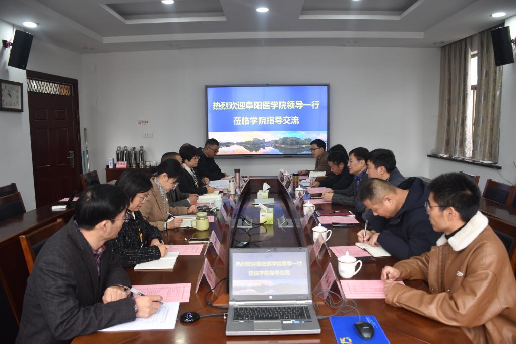 12月3日,阜阳师范大学球盟会经理刘玉祥、党总支书记石有武、学术副经理陈德宇,以及教务秘书、护理学专业负责人、医学检验技术专业负责人和康复治疗学专业负责人等来学院调研交流。球盟会党委书记吴剑平、副经理邢海燕、金欣,以及教研科、护理系、医学检验系、康复医学系等相关负责人参加会议。