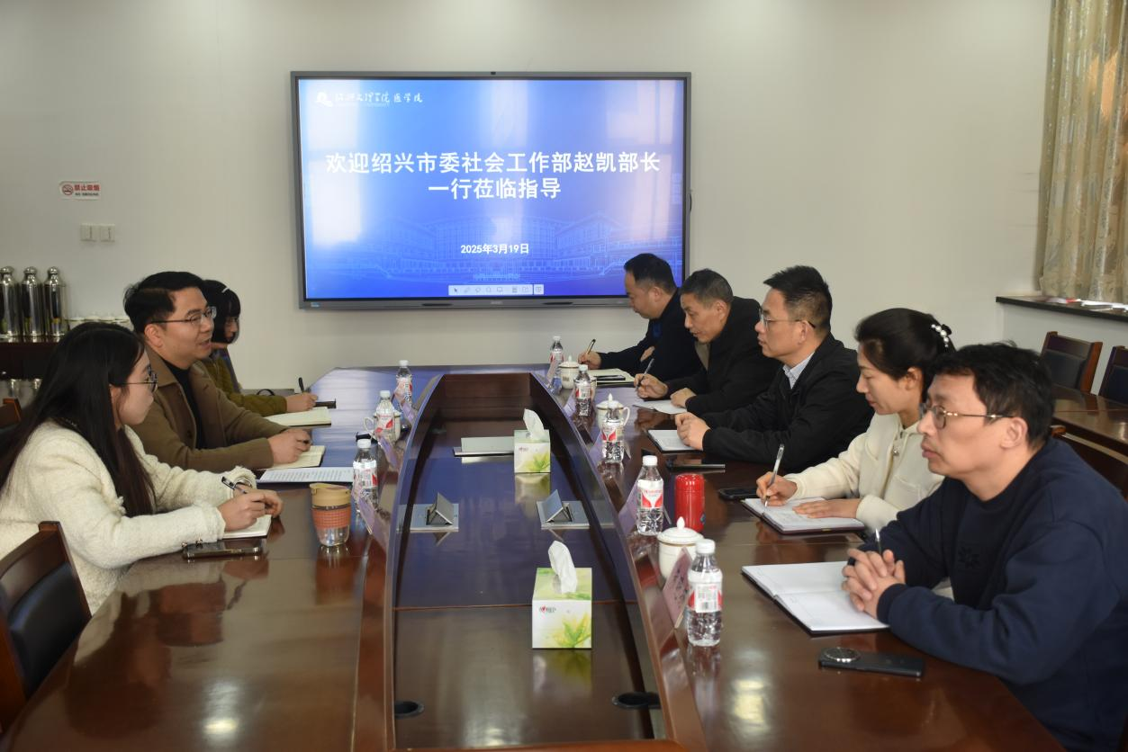 3月19日上午,绍兴市委社会工作部副部长赵凯,原绍兴市民政局党委副书记、一级调研员、市社会工作协会会长姜晓迪,市委社会工作部社会工作人才和志愿服务处处长戴怡,市委社会工作部社会工作人才和志愿服务处二级主任科员朱晓扬,绍兴市越城区委社会工作部副部长王正华一行赴学院开展社会工作与志愿服务协同工作专题调研。球盟会党委副书记、纪委书记、越城区志愿者协会会长林国旗及球盟会团委负责人陪同调研并参与座谈。