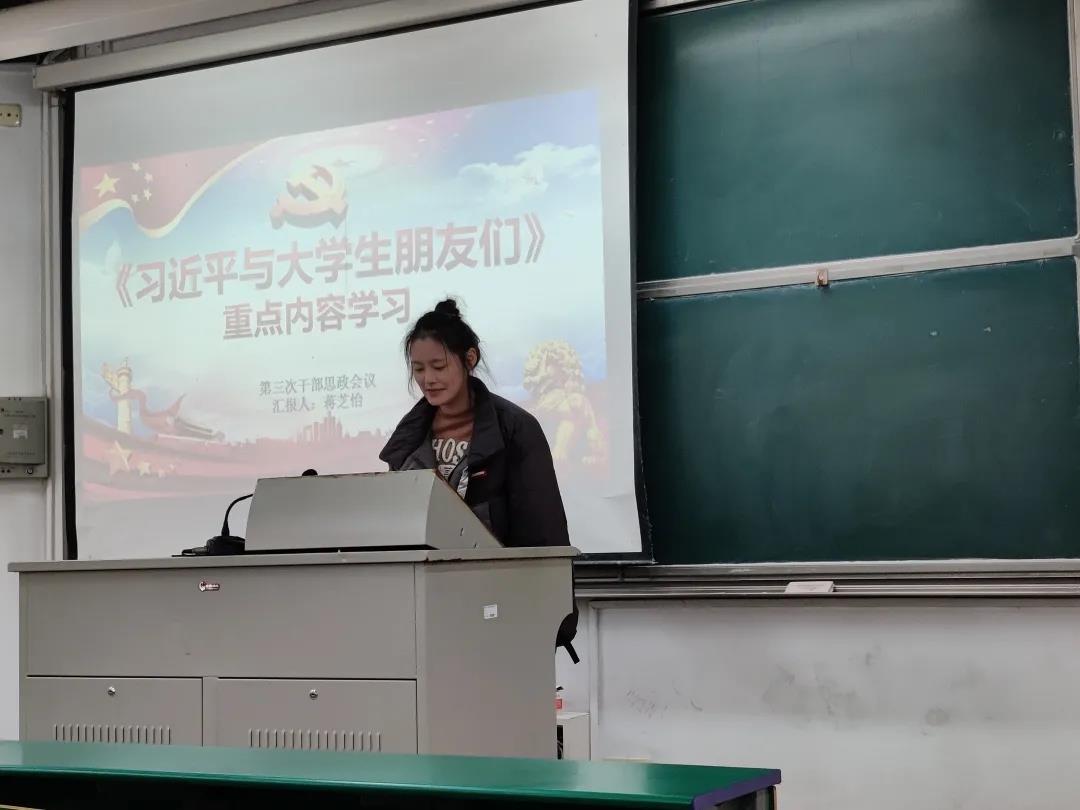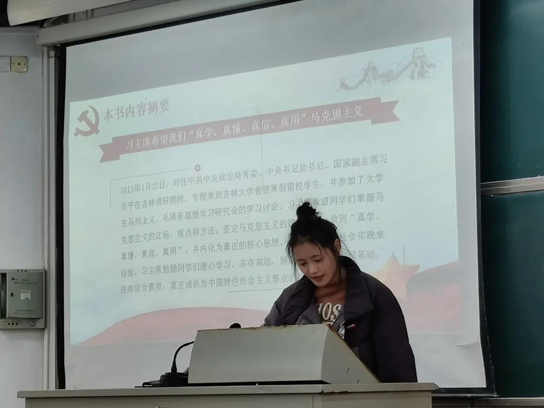 首先,蒋芝怡同学带领大家了解《习近平与老员工朋友们》全书的内容及总书记的重要讲话精神,全面呈现了习近平同志在不同时期对青年老员工一以贯之的关心关怀,系统展现了习近平总书记关于青年工作的重要思想的发展脉络积极关注国家大事、社会发展,将自身的成长与祖国的命运相联系,争做德智体美劳全面发展的社会主义合格建设者和可靠接班人。