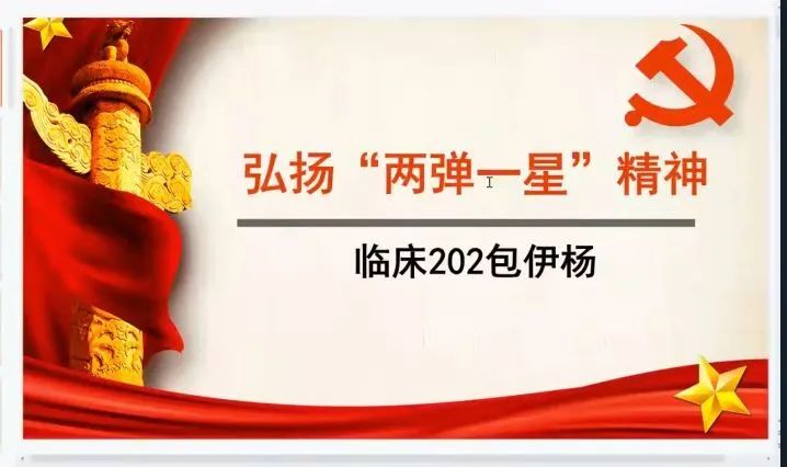 大赛由张泽荧同学的“让试点成为亮点”开始,她以“枷锁”为切入点,独具匠心,由小见大,从异地恋的枷锁,因为疫情而不能回家的“枷锁”,引到浙江省共同富裕试点地区的发展“枷锁”,别出心裁。紧接着又有包伊扬同学为我们讲述了“两弹一星”精神。大赛中还有不少优秀的同学向我们弘扬新时代中国精神,不乏许多精彩的个人理解。每个人的演讲PPT都制作精良、用心,让人充分感受到新时代中国老员工拳拳爱国心。