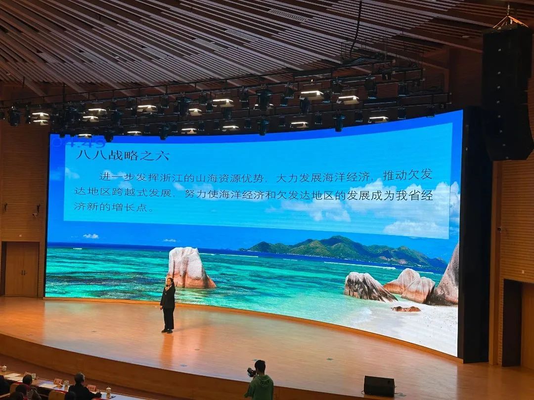 宣讲环节结束后,班瑞钧老师对同学们的精彩表现做出了点评,同学们卓越的表现体现了新时代青年勇立潮头的精神,他强调青年学子承载了国家的梦想,承载了各省域市域的愿景,承载了美好的未来。山海方面的优势与举措让浙江从跨山倒海的筚路蓝缕,演进到山呼海应的守望相助。班瑞钧老师鼓励我们承前启后发扬浙江独特的山海优势,继往开来共同向云端。
