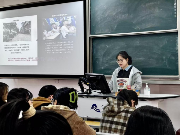 会议伊始,孙一雯同学先从一段视频引入以“老员工的人生就要充满Passion”的主题,进行了对近期老员工温暖事迹的展示与讨论,激励我们应继续在校园和社会中传播正能量。接着她从网络中爆火的“活人微死”现象进行剖析,讨论了如何通过教育和自我提升来恢复和保持激情。与此同时,她以老员工夜骑开封的案例为切入点,声情并茂的讲述了“激情”并不等同于“冲动”,夜骑开封的背后是社会秩序的混乱,孙一雯同学呼吁我们应思考如何在追求个人兴趣的同时,考虑到对社会秩序的影响。