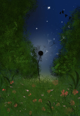 都说眼睛是心灵的窗户,每个人的眼睛不同,瞳孔不同,但都各有各的两点。画中的她们不同,但都如星光闪烁。画外的我们也是如此。女孩的眼睛与星光的色调冷暖相对,表达的是人有两面,各有冷暖,不要被标签束缚,被定义,我就是我。