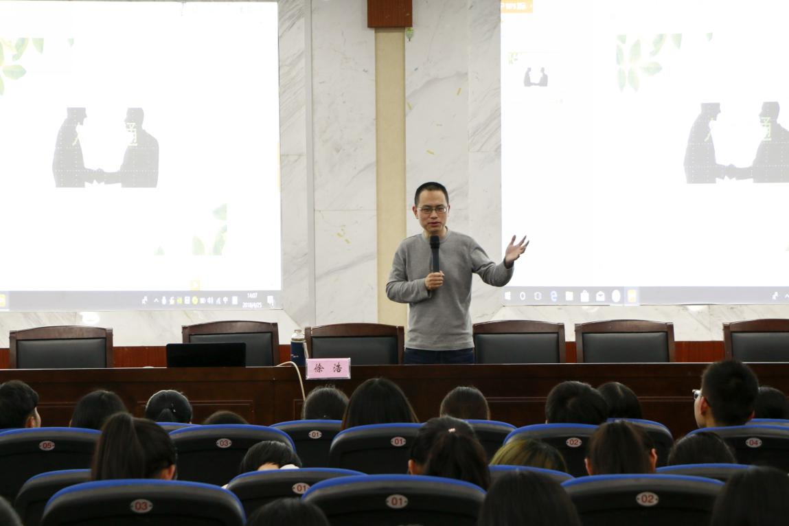 徐老师从人际交往的重要性、人际交往中的重要心理效应和常见的人际关系问题及调节方式三个方面展开讲座内容,第一,拓展人际交往的圈子,第二,拓展人际网络,人脉资源是一种资本,第三,增强环境适应的能力。主动接触社会环境,积极适应社会环境;积极调整自我,提高应对的技巧;利用社会支持系统,积极寻求帮助。用深入浅出的语言引导同学们学习在人际交往中塑造良好的第一印象,不断提升在气质、能力、性格、品味上的个人魅力。徐浩老师用他风趣幽默的语言和深入浅出的讲解帮助同学们鼓起敞开心灵之窗的勇气,搭起与人良好沟通的桥梁,为每一个困惑的同学提供那把打开心扉的钥匙,使同学们在欢乐中度过美好的大学时光,既缓解了同学们的心理压力,也引发同学们的自我思考,在场的所有人都在讲座中收获颇多。