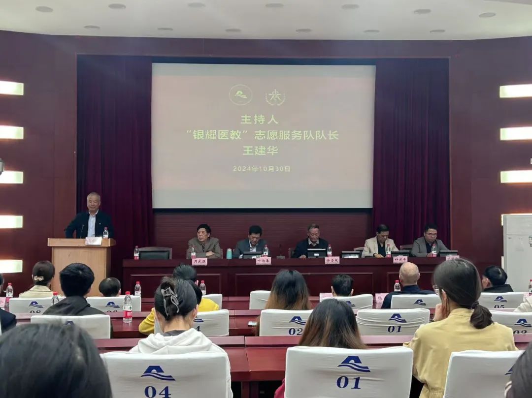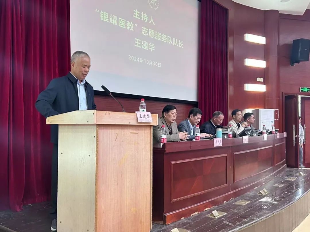 “银耀”医教志愿服务队队长王建华老师介绍出席2024年“银耀医教奖学金”颁奖仪式的领导与参加人员。