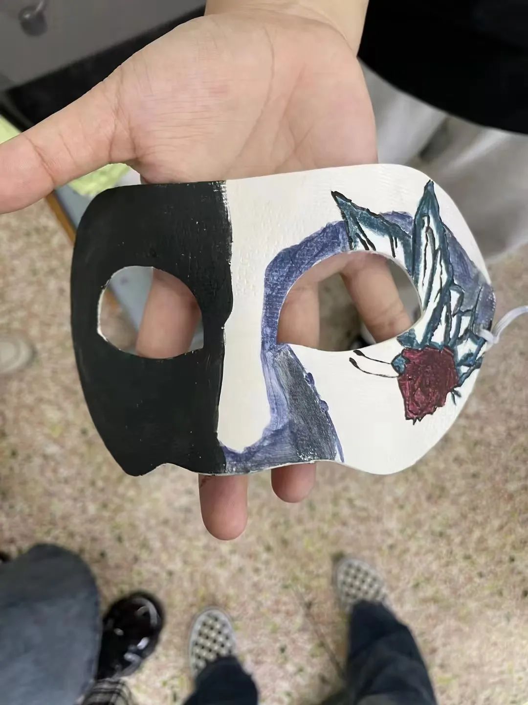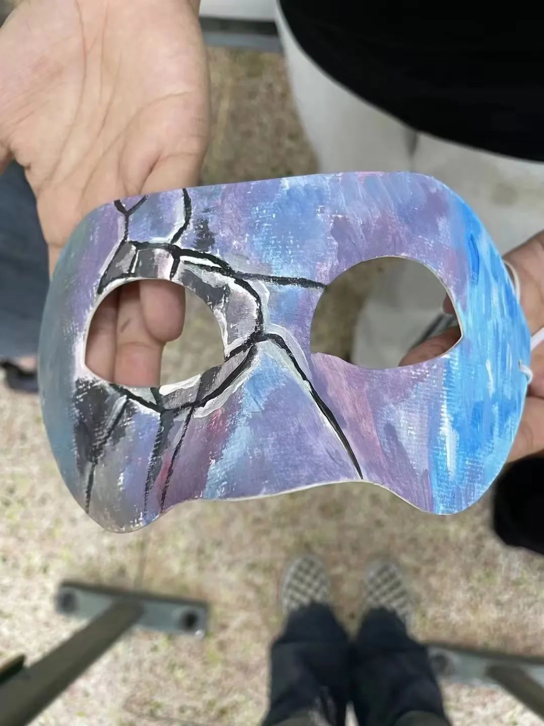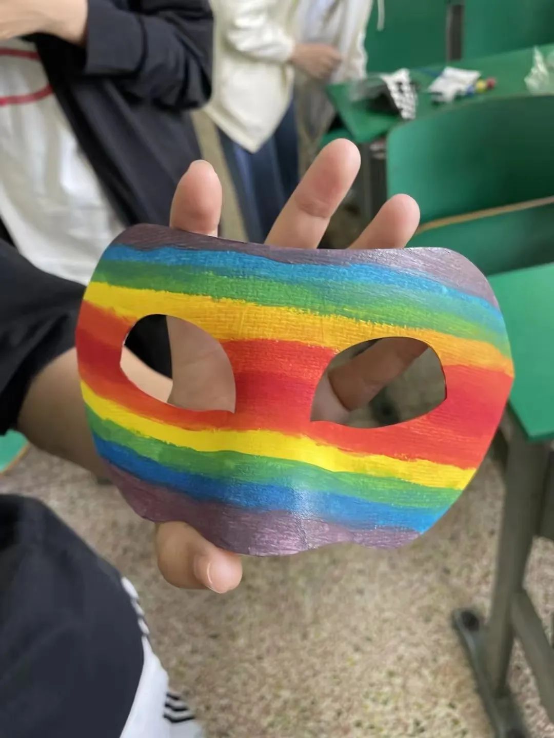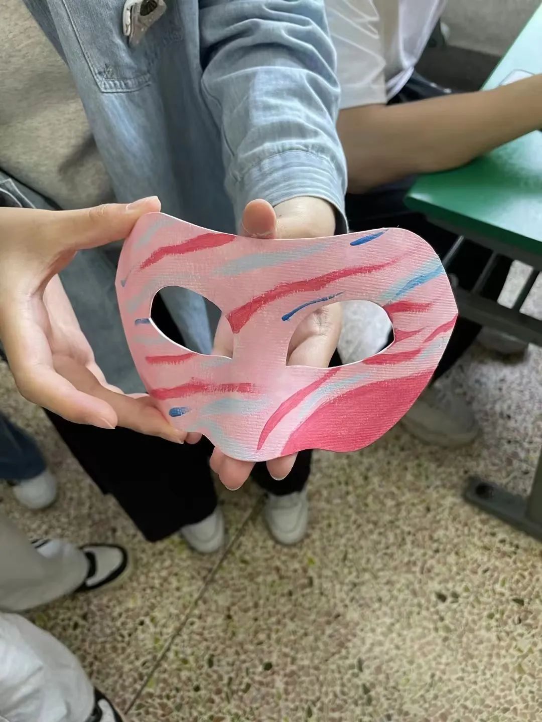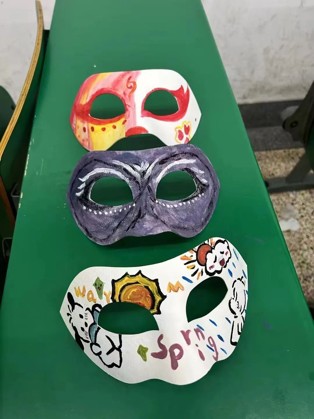 而后同学们纷纷选择了自己最喜欢的颜色,在面具上添加了喜欢的图案或者文字,无论是星星、花朵,还是抽象的图形。每一个细节都是大家个性的一部分,都让每个人的面具充满活力,成为宣泄情感的载体。