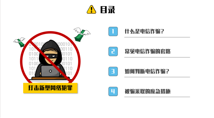 首先团支书为大家简单介绍了电信诈骗的概念。电信诈骗主要围绕“伪造、冒充、欺诈”三个词展开,会对人们的心灵和财产造成巨大损害。