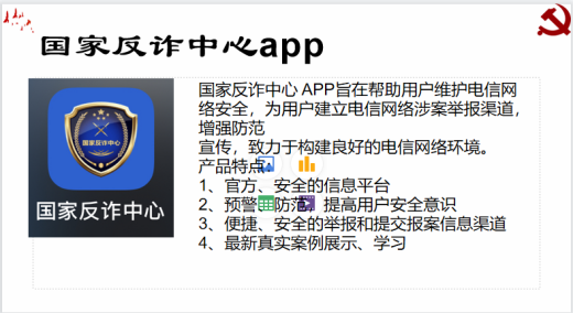 首先,团支书向同学们介绍了国家反诈中心APP。该APP旨在帮助用户维护电信网络安全,为用户建立电信网络涉案举报渠道,增强防范宣传,致力于构建良好的电信网络环境。