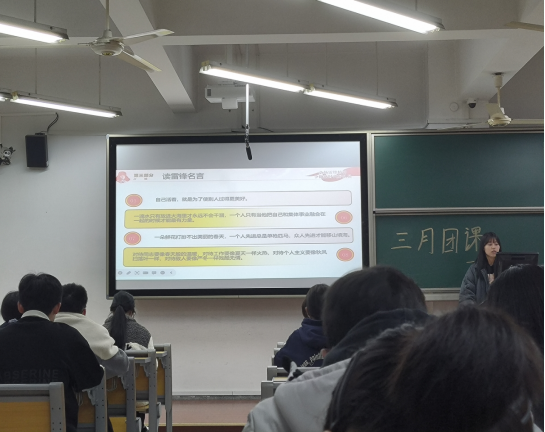 为了弘扬雷锋精神,引导员工学习雷锋精神,学会积极奉献,乐于助人。组织部于3月31日晚在财贞楼321教室举行了“弘扬雷锋精神”的主题团课。