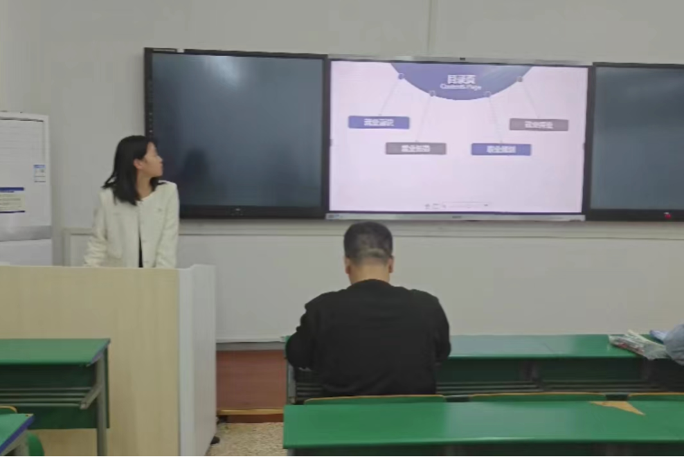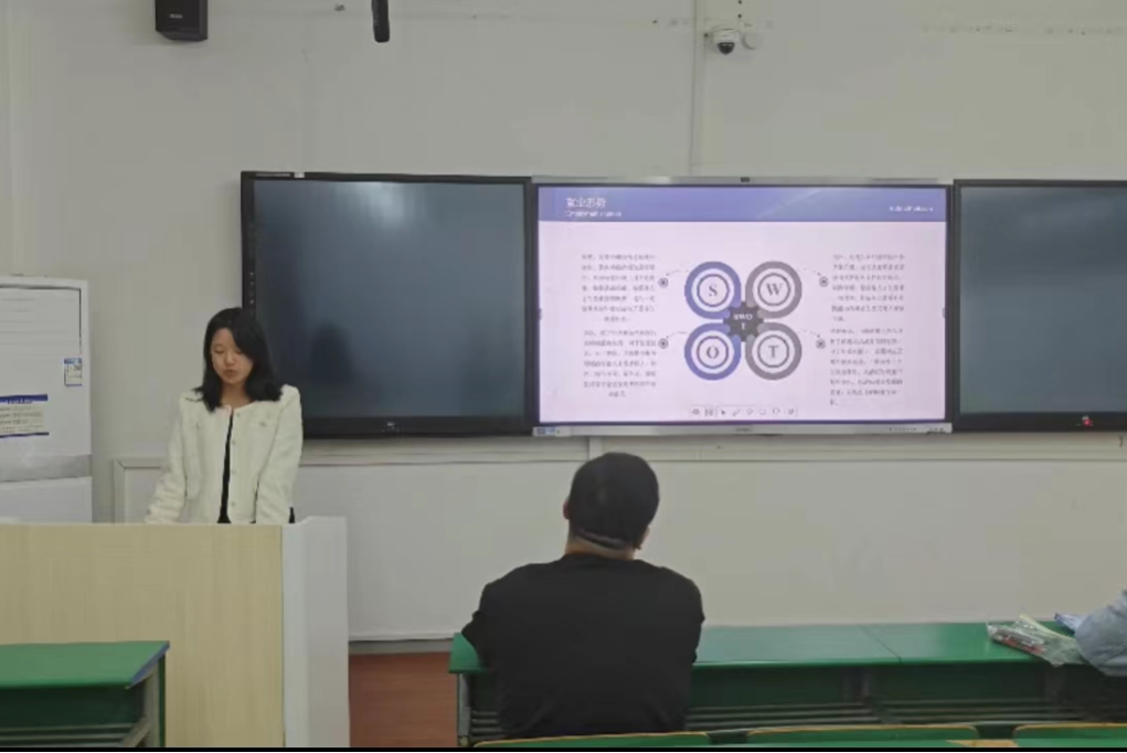 首先,团支书指出“就业传帮带,师兄师姐面对面”主题的内涵,从“就业意识”“就业形势”两个角度展开讲解,让同学们充分意识到社会现状,找准自我定位。接着,团支书就“职业规划”“就业择业”的话题与同学们开展讨论,并鼓励同学们积极参与,大声讲出自己的追求。然后,团支书为同学们播放了与“就业传帮带,师兄师姐面对面”的相关讲座视频,她希望各位同学能用心聆听专家见解,吸取其宝贵的择业就业经验;全方位、深层次理解就业现状,选取合适自己的就业道路。最后,团支书邀请各位同学上台阐述自己的目标和未来的职业规划,让大家进一步明确自己的未来定位。对此,同学们一致认为参加志愿活动可以为未来工作做好奠基,并表示今后将更加努力学习专业知识,为将来就业提供夯实的基础,积极参加多姿多彩的校园活动,锻炼培养个人综合能力,树立正确的就业观。