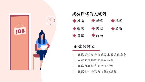 首先,团支书与同学们就“就业or考研?”这一问题展开讨论,同学们积极发言、踊跃参与,并提出不同的见解。然后,团支书向大家介绍了面试的特点及面试成功的关键词等,并指出面试成功的重中之重是要具备较好的仪表修养和过硬的专业水平。接着,她向同学们分析了当下就业的形势并就当前形势给出了具有建设性的破局之法,并鼓励大家在了解自身情况的同时,还要熟知当下就业形势。