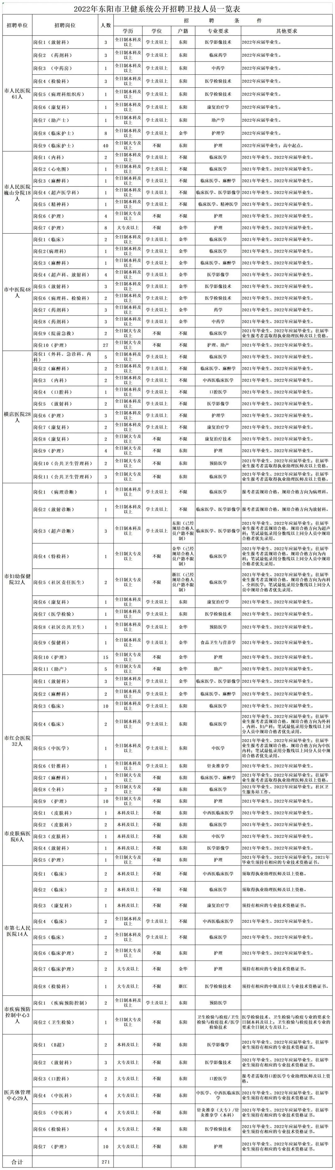 3、户籍要求:除部分单位岗位面向全国、浙江省招聘外,其他单位的岗位均面向金华地区和东阳市招聘。户籍截止时间为2022年1月28 日;