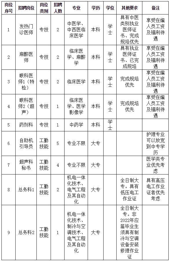 注:学历要求:"中专"指中专及以上;"大专"指大学专科及以上;"本科"指大学本科及以上。