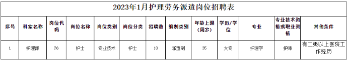 公司因工作需要,拟招聘护理派遣制岗位10人(岗位表详见附件)。