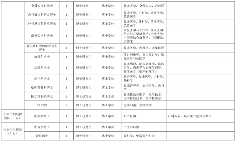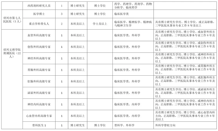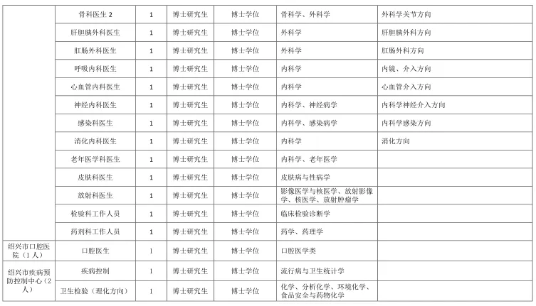 绍兴市卫生健康单位2025年度第一次公开招聘博士研究生、正高级专家计划表(80人)