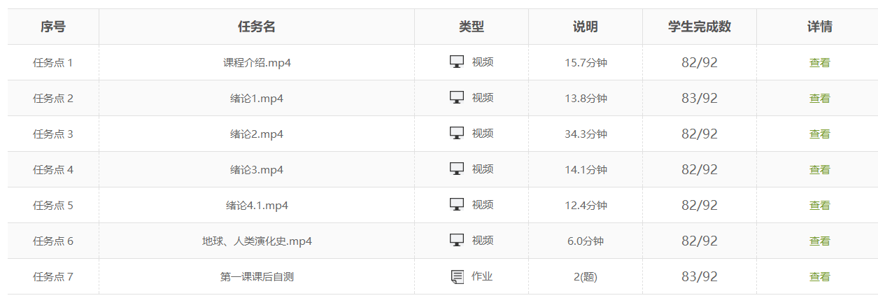 本课程之前几个学期已经在学习通上构建了在线平台辅助课堂教学,内容主要包括题库、课件、电子教材、视频、课外阅读材料链接等。为了适应本次教学工作全面转到线上,在开课前补充了更完善的各项教学资料,并录制了前四周重要知识点的教学视频上传。同时开课前将员工导入课程站点,并确认每位员工已经提前登录学习通进入课程,观看了课程介绍。