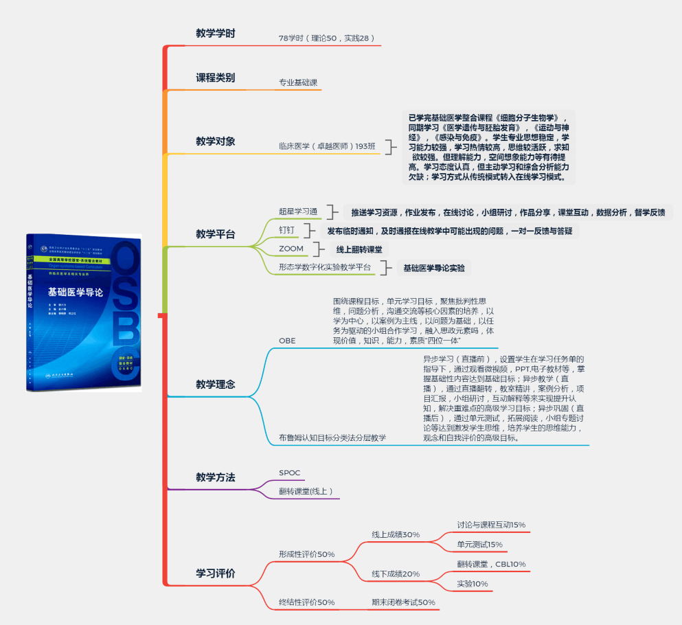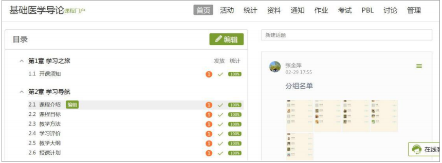 开课准备:《基础医学导论》于2017年2月在超星泛雅平台上线,已完成1个周期的线上线下混合式教学实践。本人结合多年积累的线上线下混合式教学经验,结合疫情,在原有的基础上,经过前期调研,优化了在线课程体系,细化了学习任务和知识结构,完善了教学资源,按知识点拆分录制微课和上传电子教材,并充实了试题库等。