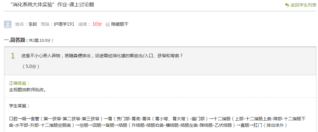 线上大体实验教学过程中,通过虚拟和真实标本软件实现自主学习和观察是实现知识目标达成的主要手段,结合知识点测试、绘图作业互评和师生互动等促进员工对人体形态学知识的理解和记忆;通过有难度的思考性作业、小组任务和主题讨论等锻炼员工应用、思考和理论联系实际的能力;契合情境和实例的有震撼力的闪光点才是课程思政有效方法。