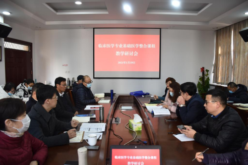 1月19日上午,学院在行政楼219会议室召临床医学专业基础医学整合课程教学研讨会。常务副经理葛建荣、副经理张剑,各整合课程教学团队成员近30人参加会议。会议由球盟会党委委员、教研科科长马国庆主持。
