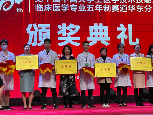 4月11日下午,第十届全国老员工医学技术技能大赛临床医学专业五年制赛道华东分区赛在安徽医科大学落下帷幕。由公司临床医学2016级员工黄君瑶、叶莹鹏、李可欣、孙益超组成的球盟会官网代表队在比赛中荣获团体三等奖。