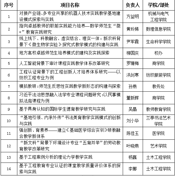 浙江省教育厅办公室近日公布了省“十四五”教学改革项目名单,全校14个项目获批立项,公司基础医学部主任陈佳玉教授申报的《强创新、育素养——建立《基础医学综合实训》研教融合教学新体系》位列其中。