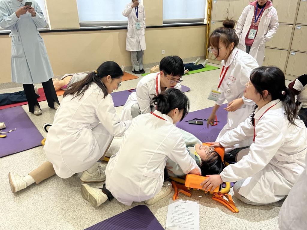 3月7日上午,一堂别开生面的“院前急救综合模拟课”在医学实验中心进行,本次课由《急危重症护理学》课程负责人赵伟英老师主讲,课程组老师一起参与。校附属医院陈辉英、黄艳等五位临床教师全程观摩了课堂教学。