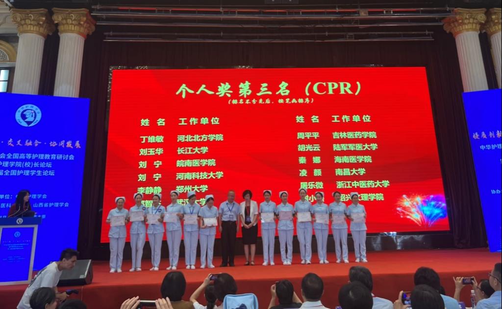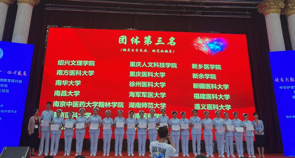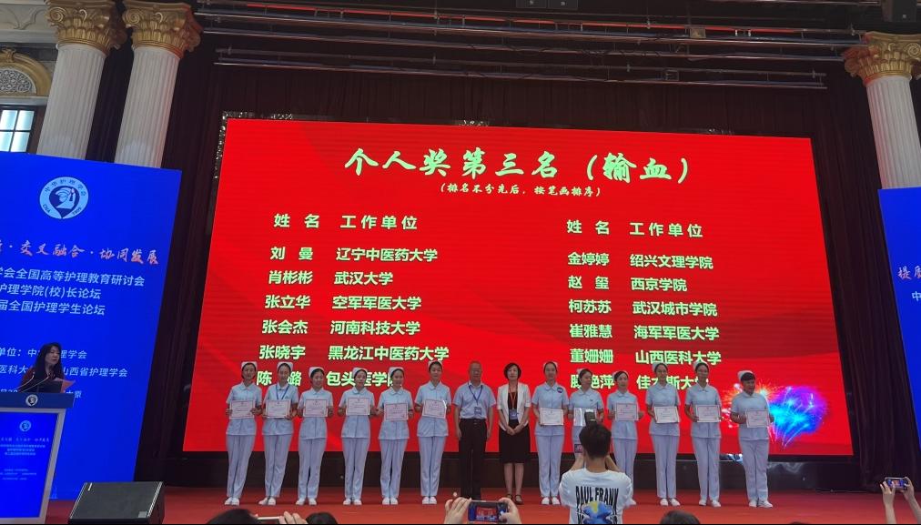 8月21日,由中华护理学会主办,山西医科大学承办的第二届全国护理本科院校教师临床技能竞赛于在太原山西医科大学举行。在经过前期30个省激烈的省赛选拔后,最终共有85家院校、255名选手进入决赛。由球盟会护理系谢小燕,金孔军老师和附属第一医院金婷婷老师组成的代表队在大赛中获得团体奖第三名。谢小燕老师获得CPR个人操作第三名,金婷婷老师获得静脉输血操作第三名。