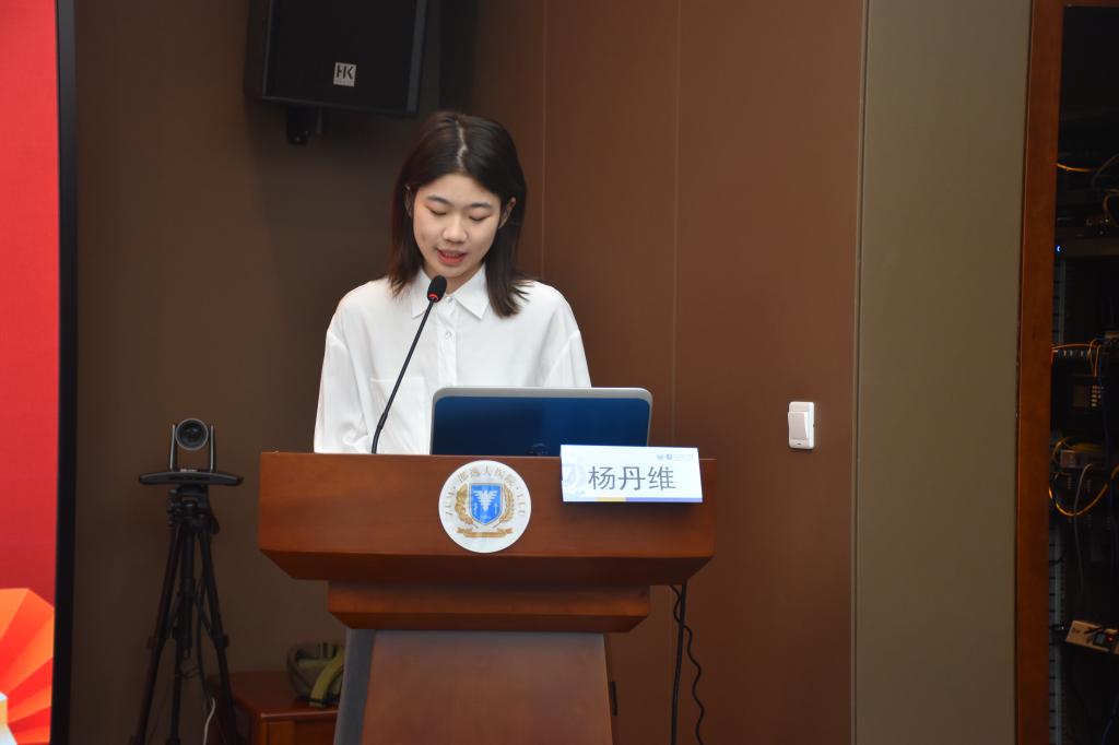 员工代表杨丹维发言。她表示将加倍珍惜在邵逸夫医院学习的机会,遵守教学大纲要求,服从医院教学安排,严格遵守医院纪律,虚心学习,用行动弘扬医者仁心的大爱情怀,不断提高学习能力和水平。