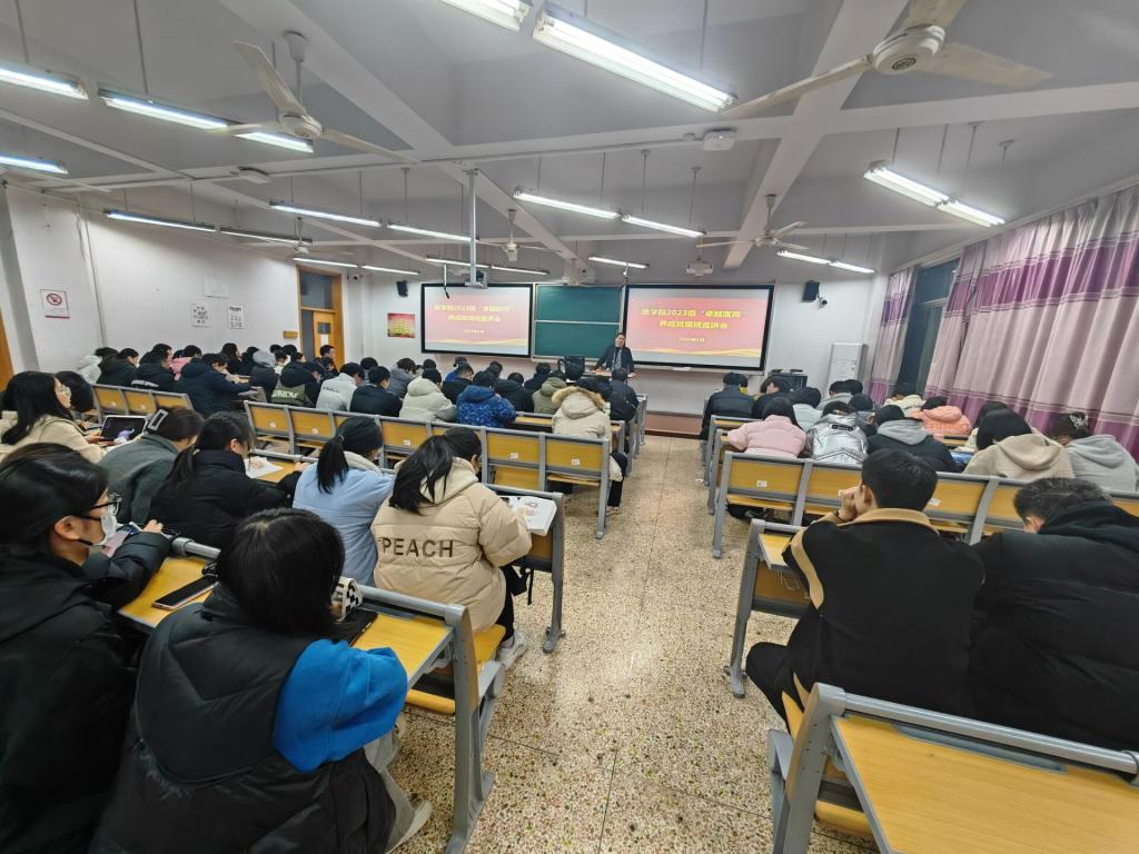 1月4日晚,2023级“卓越医师”养成班组班宣讲会在财贞楼213教室举行,院领导林国旗、金欣,教研科、员工科、临床医学部、基础医学部相关负责人,班主任、辅导员及临床医学231、232、233班全体同学参加,宣讲会由临床医学部副主任董梁主持。
