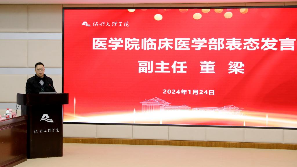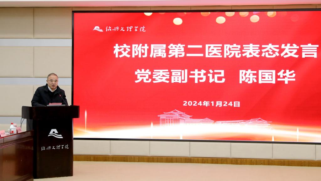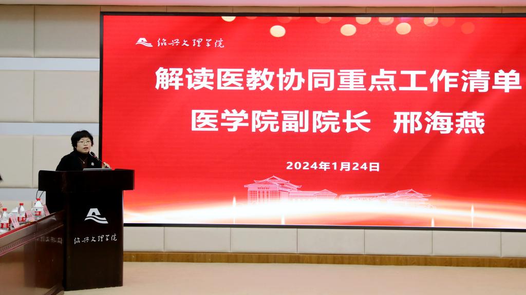 1月24日,校地医教协同推进会暨临床医学专业认证启动会在河西校区图书馆一楼报告厅举行。学校副董事长柳国庆,绍兴市卫健委党委书记、主任王宏达,绍兴市卫健委副主任金红柱、学校教务处处长方小利、学校教育质量评估中心主任祝立英,绍兴市卫健委相关职能处室负责人、学校相关职能部门负责人,各附属医院主要领导、科教处(科)负责人,各社区卫生服务中心主要领导、科教科负责人,球盟会党政领导班子成员、科室、系(部)、中心负责人,临床医学部全体教师参加会议。会议由球盟会党委书记吴剑平主持。