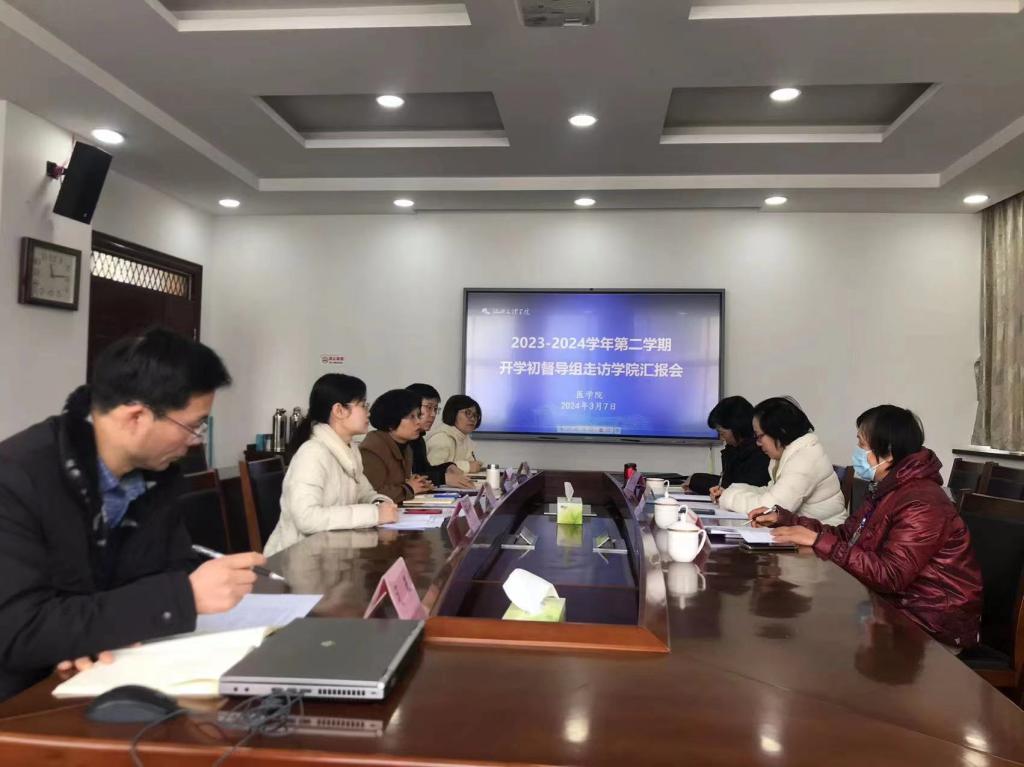 3月7日上午,刘丽华、赵梁红、王瑾、陈三妹四位校教学督导走访学院开展期初教学检查工作。副经理邢海燕、金欣,党委委员、教研科科长马国庆,医教协同办主任陈魏燕及教研科、研究生办相关人员参加汇报会。