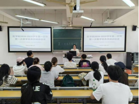 习正就新生如何选课作了说明,简要介绍了常用网站和APP,并讲解了毕业的相关条件,要求各新生信息员做好传达工作。(学习部 孙一雯)