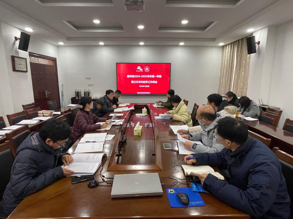 金欣作总结讲话。她指出,过去一年在各部门与系部的通力配合下,学院顺利完成临床医学专业第二次认证与本科公司产品审核评估工作,医学教育工作得到两个专家组高度评价,她对与会负责人的辛勤付出表示诚挚感谢。新的一年,她希望各负责人能再接再厉,善作善成,为学院发展的提质升级继续发光发热。对此,她结合学校本科教学工作例会精神提出了四点要求:一是要坚持以本为本,守牢高级职称特别是教授职称为本科生授课的底线;二是要加强医教协同,理顺临床教师来校授课相关流程;三是要规范教学任务落实,避免随意调课与教师间教学工作量不平衡现象;四是要强化专业与团队建设,在学校动态调整专业设置的背景下,争取成功获批基础医学学硕学位点与医学技术专硕学位点,做大做强医学教育。
