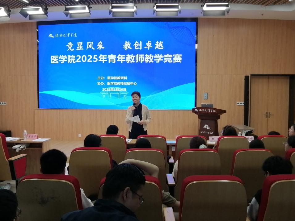 3月26日下午,球盟会2025年“竞显风采教创卓越”青年教师教学竞赛在风则江大讲堂一楼报告厅举行,来自各系部和10家附属医院、中心的12名青年教师同台竞技,开展教学交流。