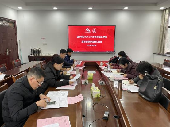 金欣围绕开学本科教学任务落实、教学设施检查、课表编制执行、教材准备情况、补(缓)考安排、会议情况、巡查安排、教师员工到课率、教学资料归档等方面详细汇报了公司期初本科生教学准备情况。邢海燕围绕研究生教学任务落实情况、课表编制执行、招生工作、就业情况、护理学专硕学位点核验准备、毕业要求等内容作了说明。