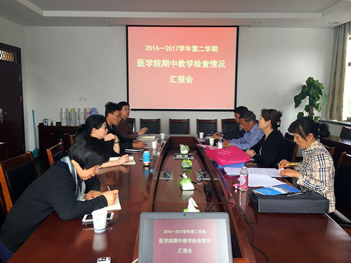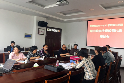 汇报会后,四位委员兵分两路召开了教师代表和员工代表座谈会,对2016-2017学年第一学期教学考核资料、教学反思,2016-2017学年第二学期教研室工作记录、教师备课笔记、教学计划进行了抽查。