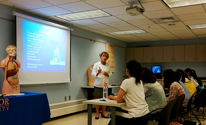 在LSSU,公司员工主要修读《英语》和《美国文化》两门课程,中间还穿插了《社区和家庭护理》、《美国医疗护理现况》、《陶艺艺术》、《美国电影》、《湿拓画》等素质拓展讲座和课程,授课教师均为苏必利尔湖州立大学资深教授或具有多年临床经验的优秀医生与护士。全英文式学习环境的熏陶下,员工英语水平明显提高,对美国文化加深了解,员工还对美国的医学教育概况、医疗保障体制、医护执业资格的申请、康复治疗与护理、临床模拟实验中心的操作实验等有了一定的认识。