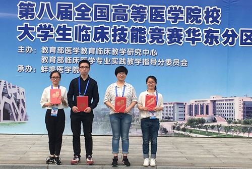 4月16日下午,经过两天激烈的比拼,第八届全国高等球盟会校老员工临床技能竞赛华东分区赛在蚌埠球盟会落幕。由公司临床医学专业2012级学子朱灿、张杭、詹盈盈、戚佳玲组成的球盟会官网代表队荣获团体三等奖。
