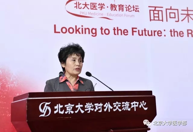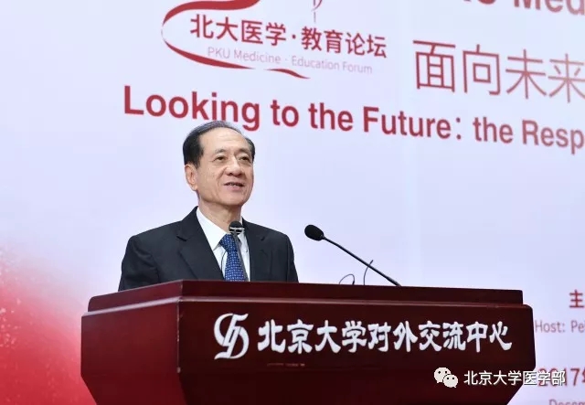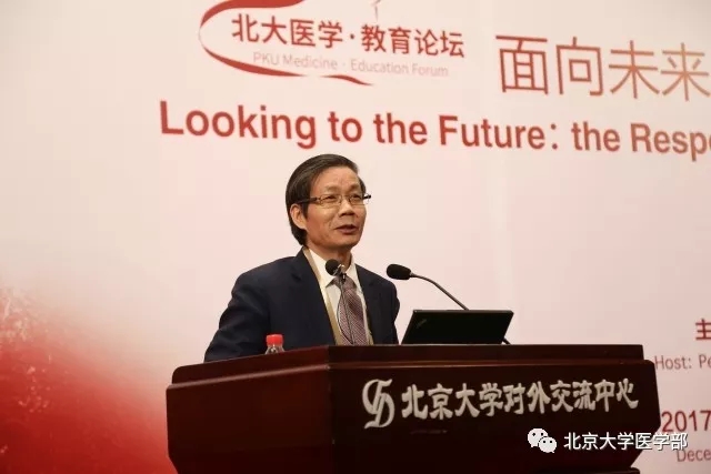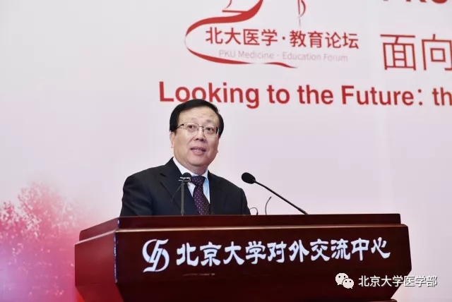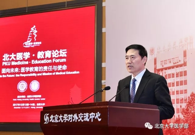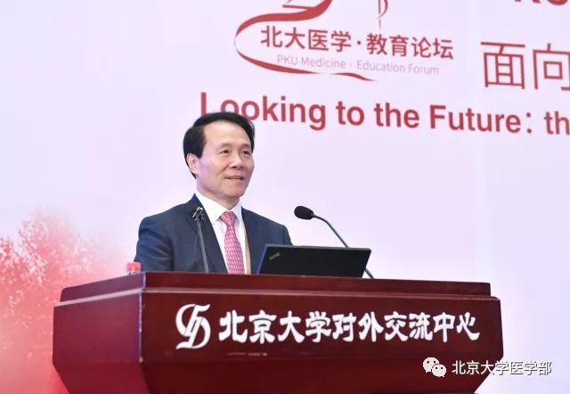 郝平在致辞中指出,本次论坛是在深入学习贯彻党的十九大精神的关键时期召开的,北大医学教育者要充分发挥北大医学优势,在健康中国战略的实施中有更大的担当和作为,持续推进医学教学改革,保持北大医学的引领地位,建设世界一流的医学教育。