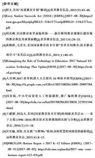 2017《美国国家教育技术计划》(以下简称2017 NETP)作为关于技术推动下的学习愿景与计划,能够为所有与教育相关的参与者和组织者提供技术推动的教学目标和行动建议,实现泛在化学习。通过解读2017 NETP的最新动态,我们能够及时了解美国教育信息化发展的趋势和未来愿景,为我国教育技术的发展与革新提供借鉴经验。